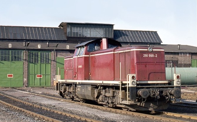Bild unten: Die 290 999-2 ist eine von der Bundeswehr ausgeliehene Lok im Dienst der Bundesbahn. Copyright: Peter Schiffer / Slg. Eisenbahnstiftung